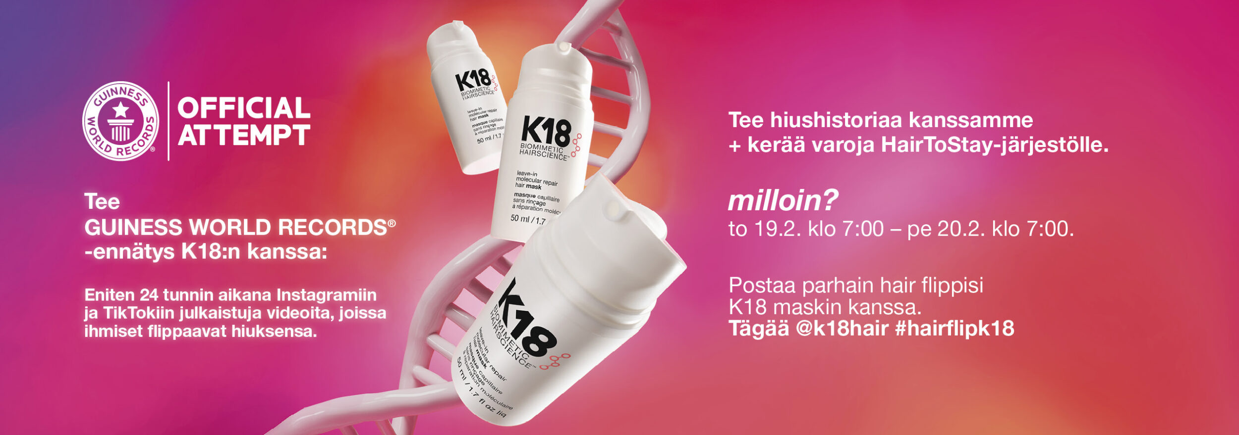 Ainutlaatuisella patentoidulla K18Peptide™ -peptidillä on kyky palauttaa vahingoittunut hius sen alkuperäiseen kuntoon. Mikään muu ainesosa ei pysty korjaamaan hiusta samalla tavalla, sen koko rakennetta vahvistaen. Kampaamoalan ammattilaiset ympäri maailman ovat jo vakuuttuneet K18Peptiden tehosta. Tämä mullistava keksintö mahdollistaa lähes rajattomia mahdollisuuksia hiuksiin tehtäviin muutoksiin. Kotikäyttäjälle se antaa mahdollisuuden palauttaa hiusten kunto sellaiseksi, kuin se on ollut ennen vahinkojen syntymistä. Mikä parasta, tämä on mahdollista ilman pitkiä vaikutusaikoja ja käsittelyvaiheita, vain 4 minuutissa.
