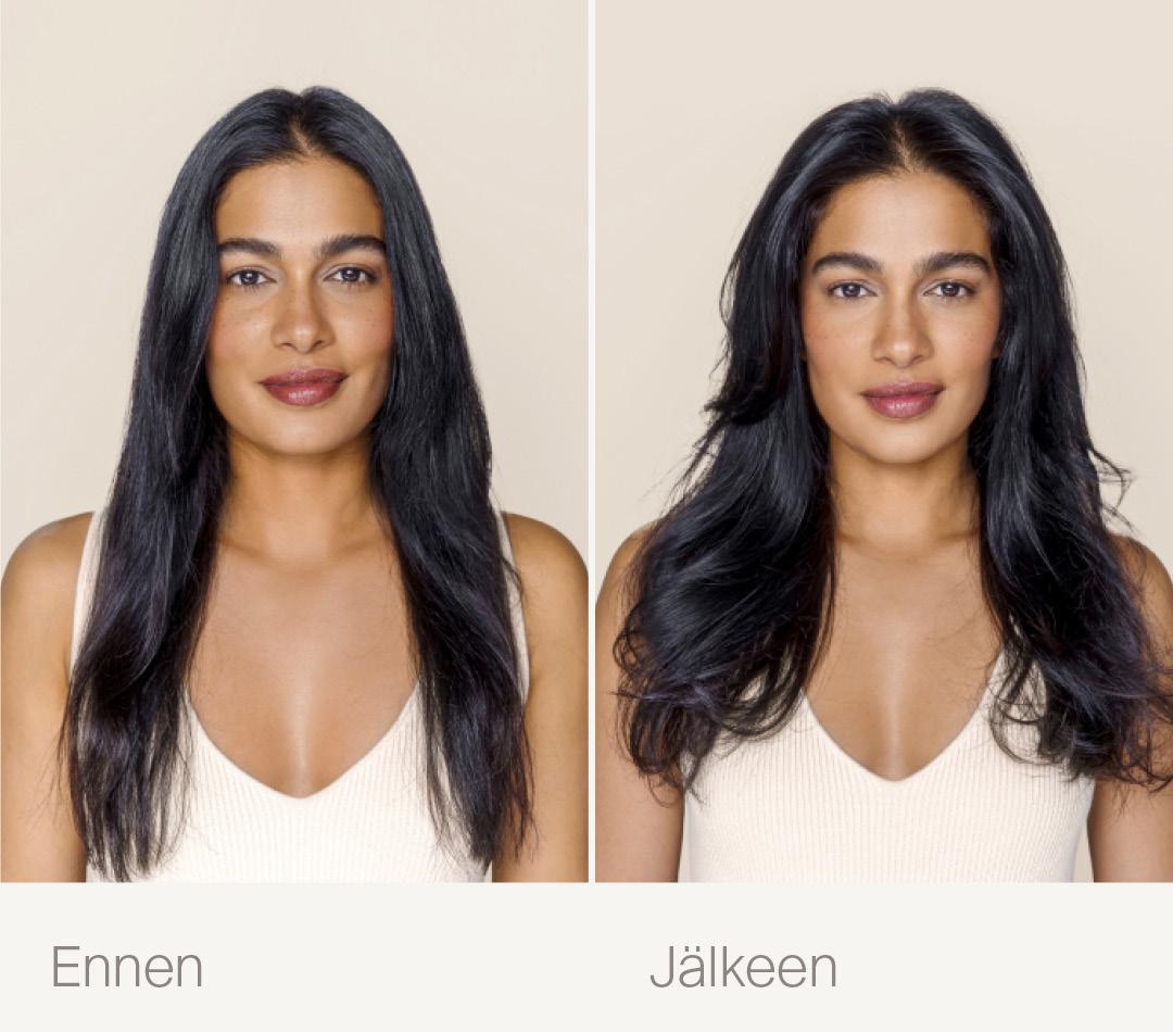 Suojaa jokaisen hiussuortuvan kevyesti kosteudelta ja muilta ympäristön rasituksilta, ehkäisten pörröisyyttä ja jättäen hiukset pitkäkestoisen sileiksi.