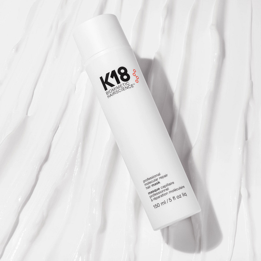 K18Hair Leave-in Molecular Repair Hair Mask on patentoidun K18Peptide-peptidin sisältävä hiuksiin jätettävä hoitotuote, joka korjaa hiuksen rakennevauriot tehden hiuksista jälleen terveet ja elinvoimaiset. Hoidon sisältämä patentoitu K18Peptide-peptidi palauttaa biomimeettisesti ennalleen hiuksen keratiinirakenteen. Vaikutusaika 4 minuuttia. Parhaan tuloksen saavuttamiseksi suositellaan 4-6 peräkkäistä käyttökertaa. Koska hiukset ovat edelleen alttiit ulkopuoliselle vaurioille, suositellaan uusien vaurioiden korjaamiseksi tuotteen käyttämistä 3-4 pesun välein.