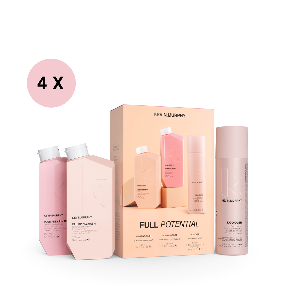 KEVIN.MURPHY FULL POTENTIAL – täyteläisyyttä, rakennetta ja volyymia hiuksiin. Osta PLUMPING.WASH ja RINSE, jotka vahvistavat ja tuuheuttavat hiuksia – saat LAHJAKSI DOO.OVER -muotoilusuihkeen, joka viimeistelee kampauksen luonnollisella pidolla ja rakenteella. SÄÄSTÄ 31%.