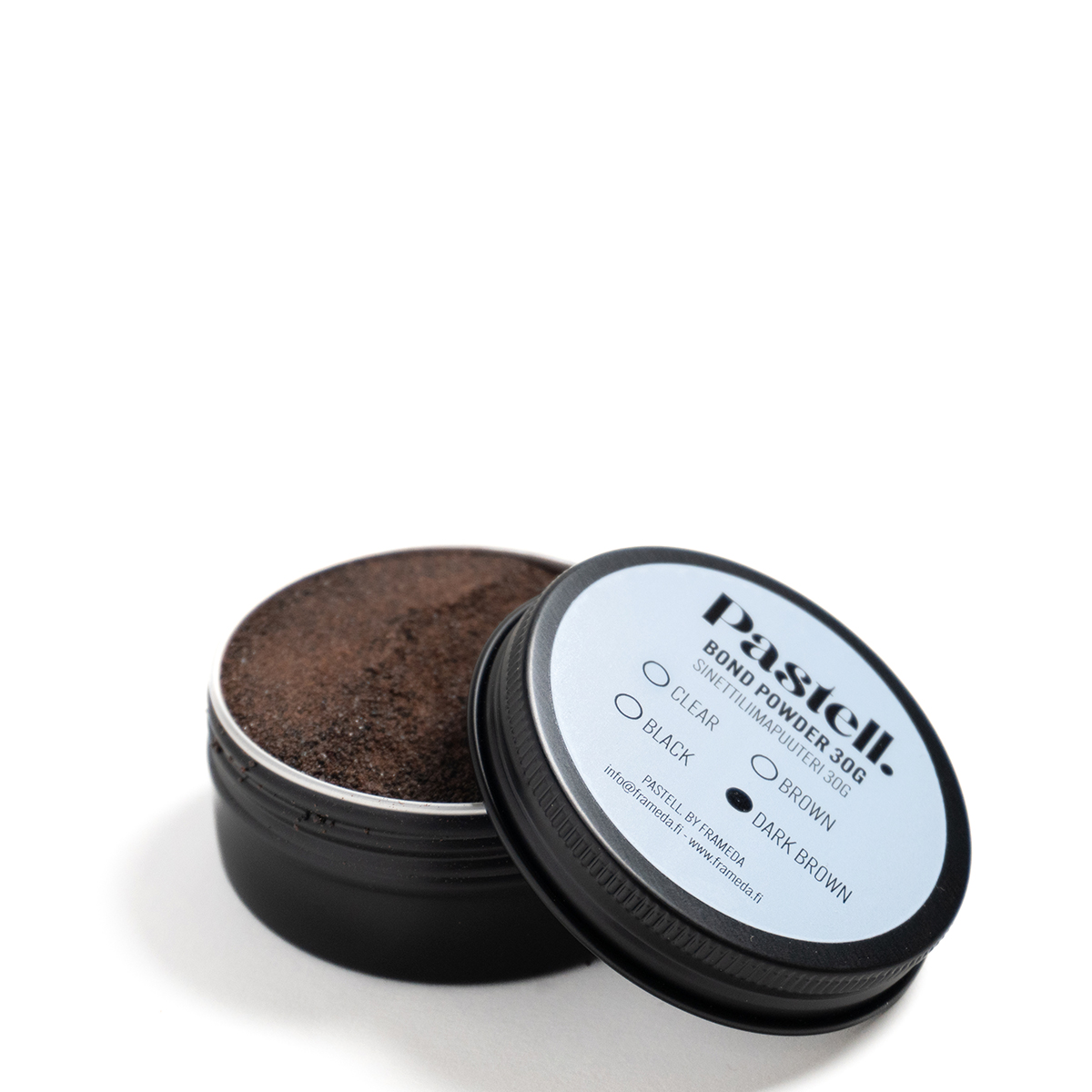 Tummanruskea PASTELL. BOND POWDER -liimapuuteri 30g hiussinetteihin.