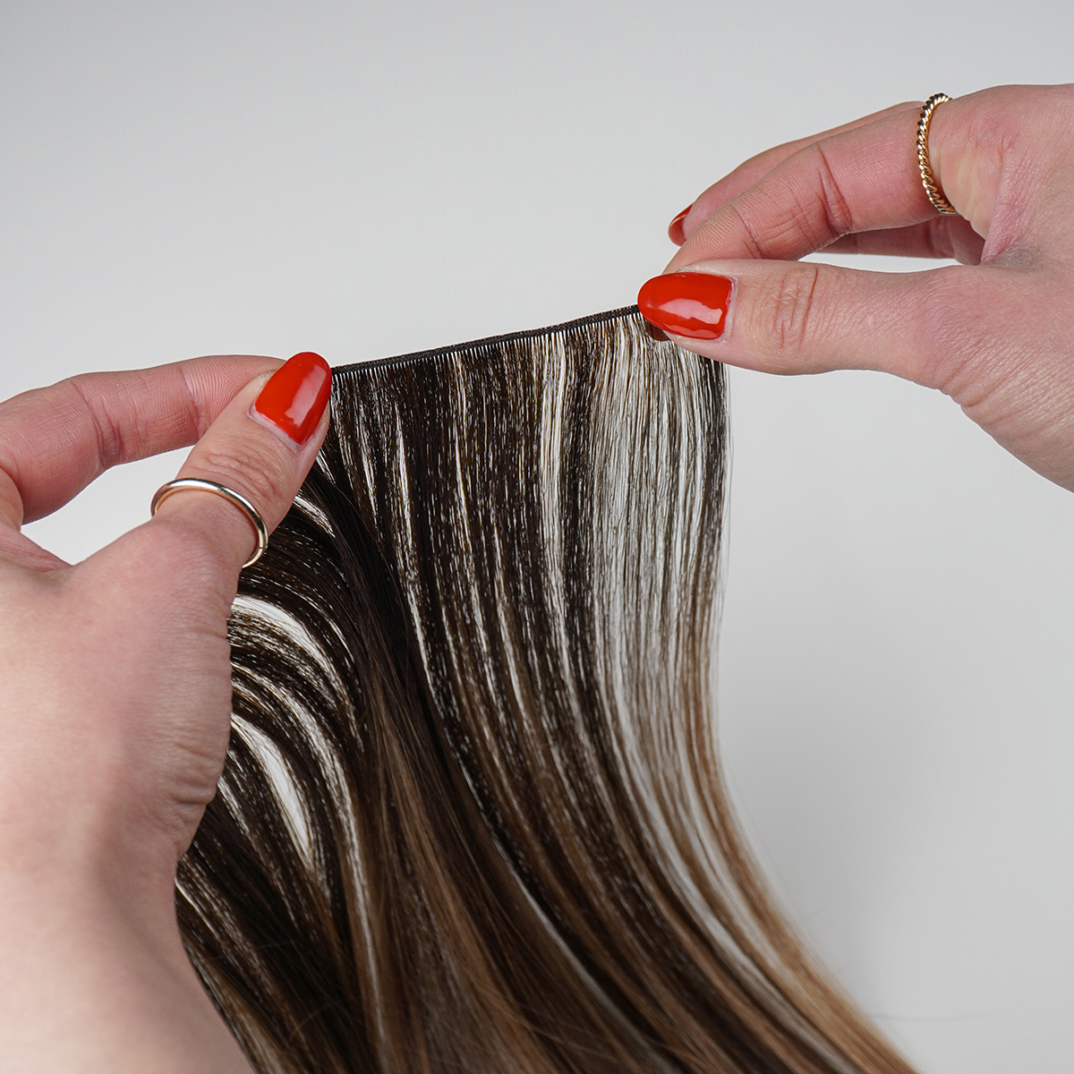 Hair Weft -hiusnauhassa on erittäin ohut nauhaosa, jossa ei ole lyhyttä kutittavaa hiusta. Nauhan pituus on n. 30 cm. Kokopään pidennykseen varaa alkaen 4 nauhaa. Nauhan voit kiinnittää hiuksiin erilaisilla ompelutekniikoilla ja beaded weft -tekniikalla, tai voit tehdä siitä klipsipidennyksen ompelemalla siihen klipsit. Voit myös käyttää sitä kampausten lisänä. Nauhaa voi leikata sen purkautumatta.